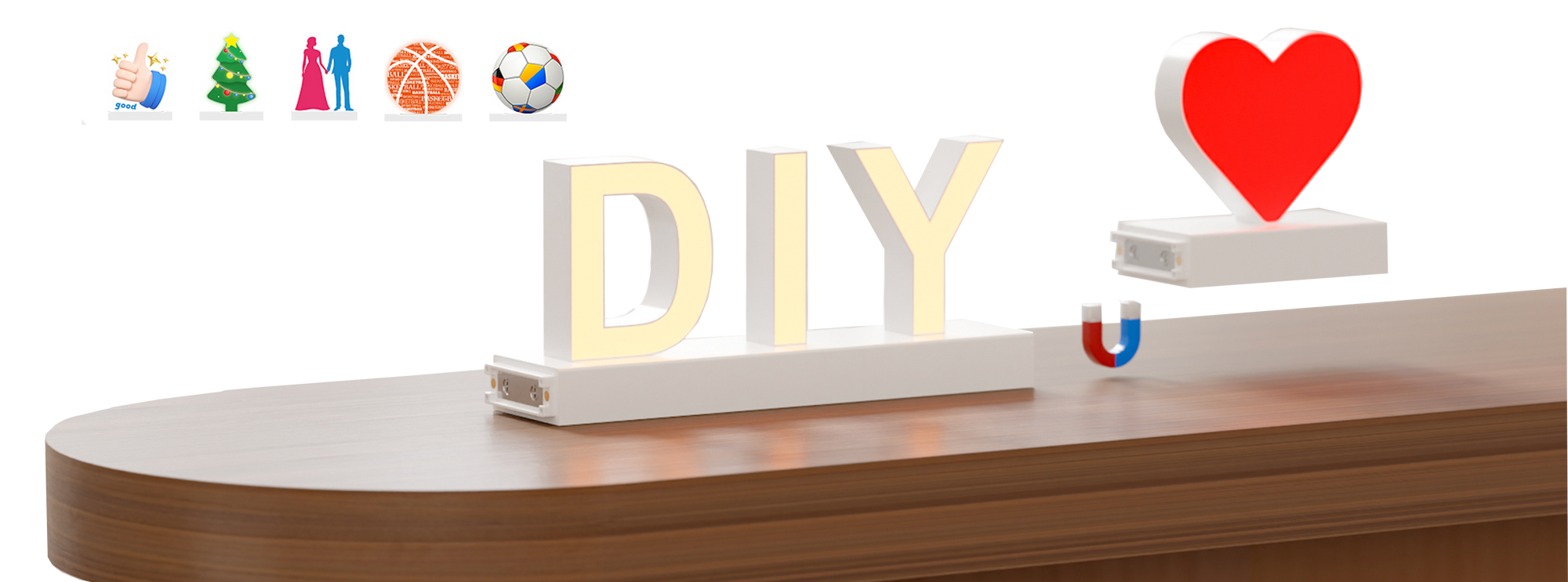 Our 3.7-inch magnetic numbers 0–9 link flexibly with letters for names, slogans, or dates. Freely mix powered by the Touch Dimmer.